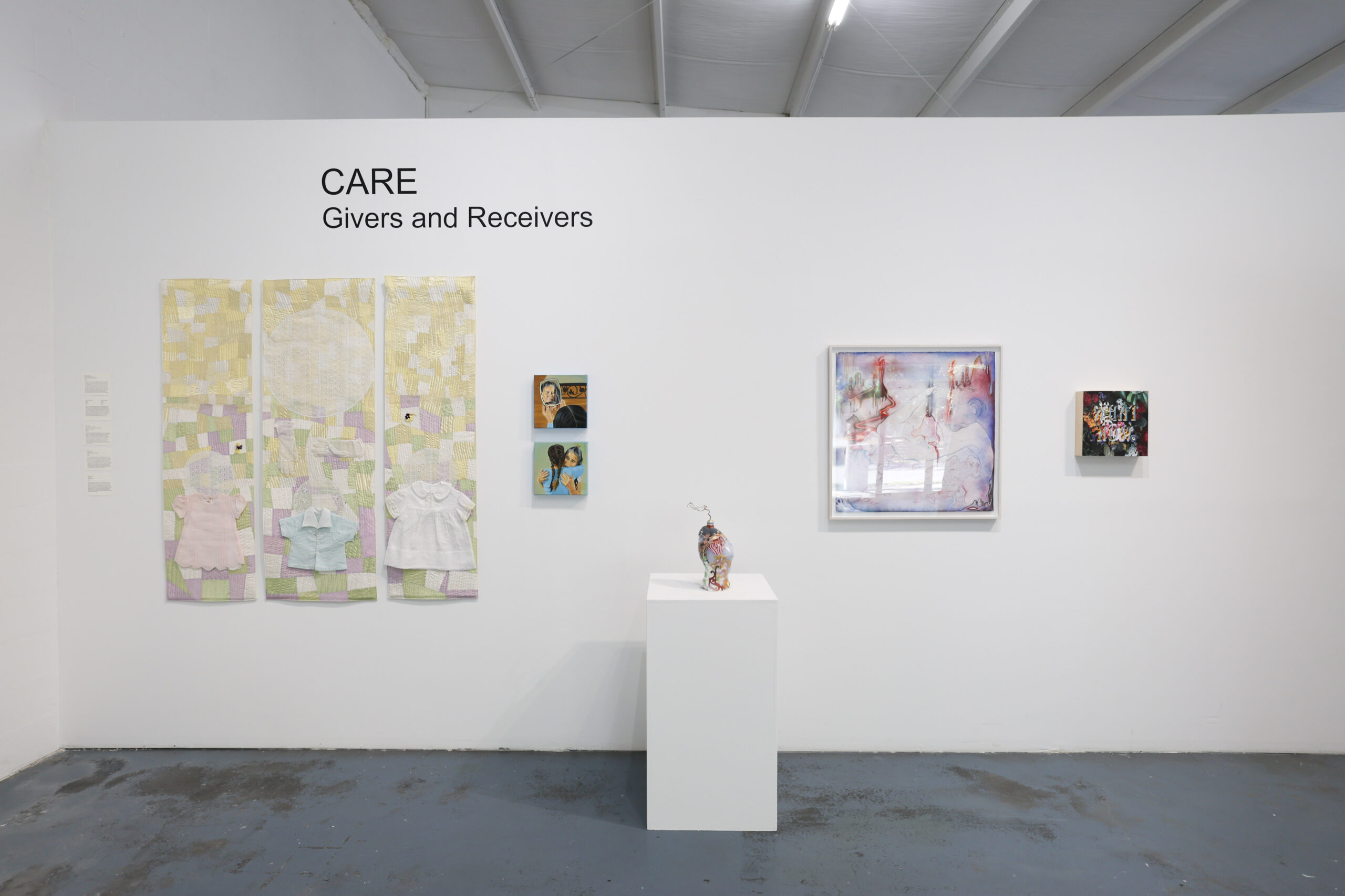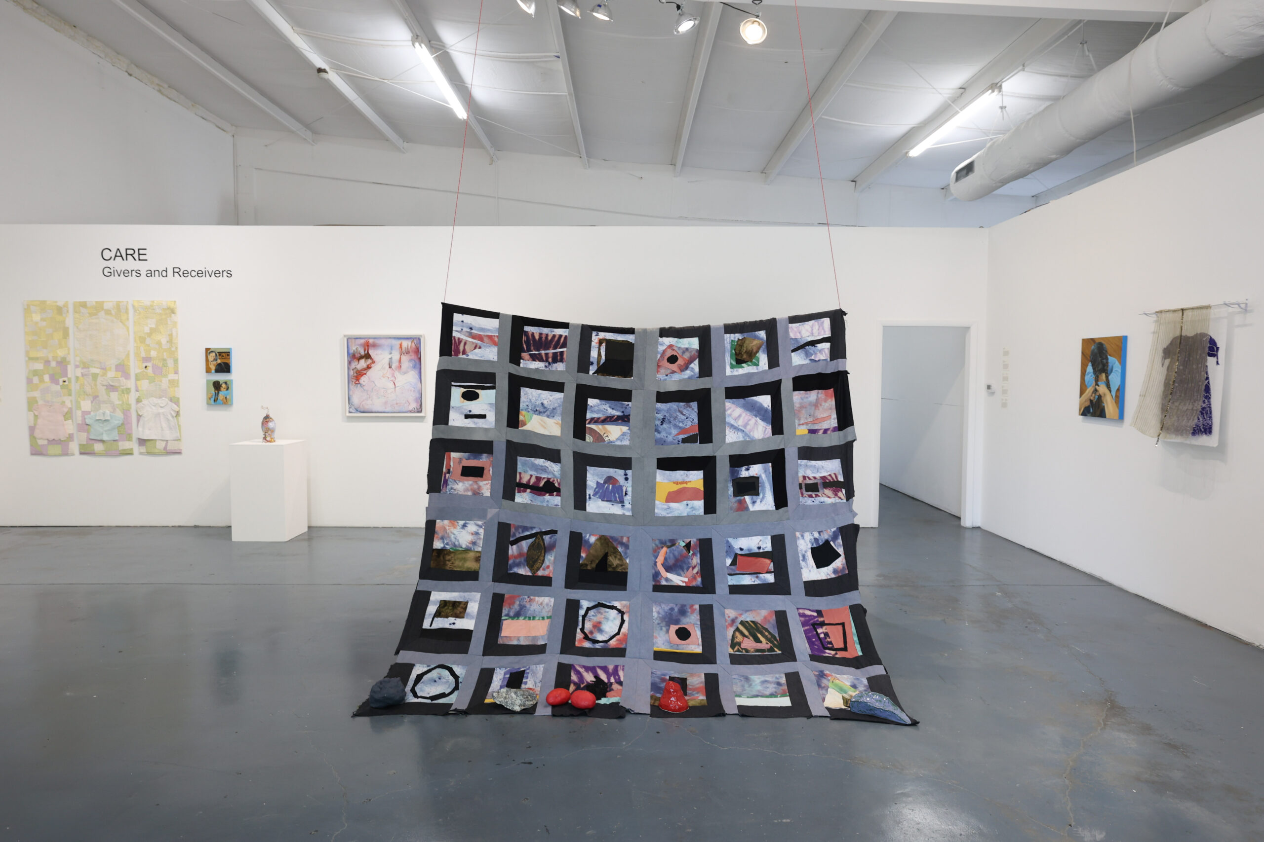 CARE: Givers and Receivers delves into the profound relationship between those who provide care and those who receive it, using the rich textures and layered narratives of mixed media, fiber, and installation art. The artists employing these innovative materials create works that reflect the emotional and physical labor involved in caring relationships. The exhibition highlights the delicate balance and interconnectedness between givers and receivers. CARE goes beyond personal relationships, including the evolving attitudes and opinions in contemporary society, looking at current events and social shifts within the concept of care. Through these tactile and evocative pieces, the exhibition invites viewers to reflect on the deep significance of care, highlighting our personal journeys and the urgent need to care for all people and the planet.