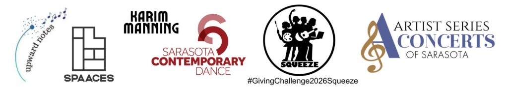 SQUEEZE supports Sarasota’s contemporary arts community during Giving Challenge 2026’s 24-hour fundraising period. All donations up to $100 made to participating local nonprofits will be matched by a generous gift from The Patterson Foundation.