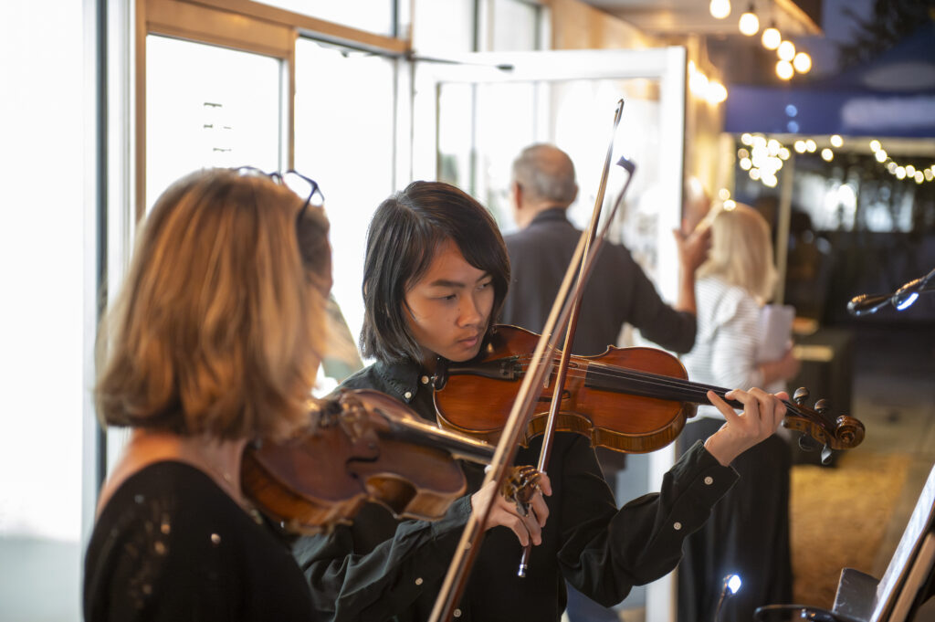 The evening was further enriched by live violin music performed by musicians from the Sarasota Music Conservatory, whose performance added an intimate, atmospheric layer to the experience. Guests enjoyed food and drinks while lingering in the gallery, studios, and shared spaces—creating a night that felt celebratory, thoughtful, and alive with exchange.