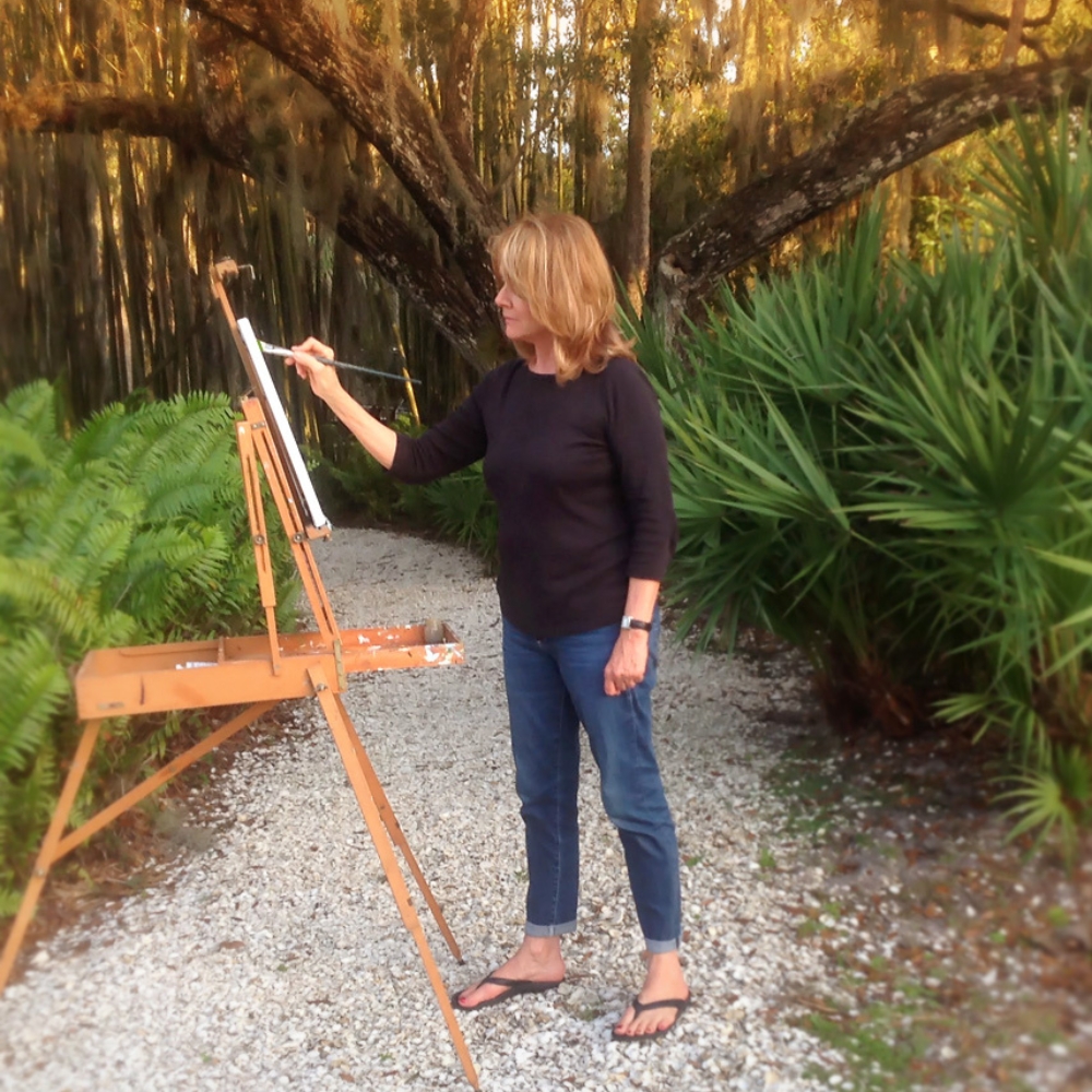 Jeanne Chinnis was born and raised in Wilmington, N.C., where she developed an avid interest in drawing, painting and sculpture. She studied Fine Art and Interior Design at the Ringling School of Art in Sarasota, Fla., and the New York School of Interior Design. After continuing her studies at the Institute Allende in San Miguel de Allende, Mexico, and with Wolf Kahn at the National Academy School of Art in New York City, Jeanne settled in the Sarasota area. She had her own interior design firm, Jeanne Chinnis Interiors, working in that field full time while also continuing to paint. She was inspired by living for 22 years on the beautiful and largely undeveloped Braden River in Manatee County, just north of Sarasota. She worked closely with her brother, Rusty Chinnis, who was a contractor primarily on Sarasota’s Siesta Key. Her life and work also were strongly influenced by her experience caring for a special-needs daughter, and she continues to design the interiors of new buildings at The Haven, a residential facility for children and adults in Sarasota. She has exhibited her work at The Studio at Gulf and Pine on Anna Maria Island, M Gallery on Palm Avenue, the Longboat Key Art Center, and the Fine Arts Society of Sarasota’s Creators & Collectors Galleria at Ringling College. Her artistic passions center on capturing the beauty of Florida’s landscapes and exploring the human form through female figurative drawing and painting.